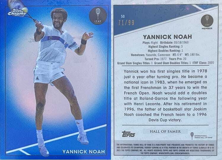 Of all the cards I’ve pulled out of any box since I’ve gotten back into sports cards, this is up there among my favorites. It’s super pretty, rarer than most, and Yannick Noah is still a pretty huge name, albeit now more so for being a musician and having a kid who played in the NBA than his tennis career. He was pretty good at that too, though.