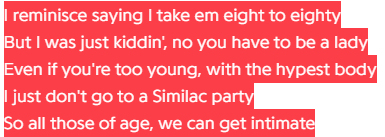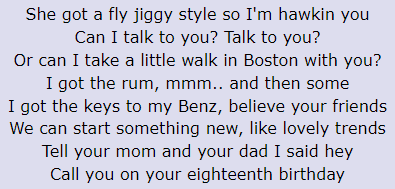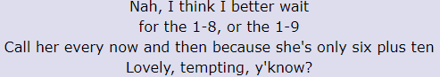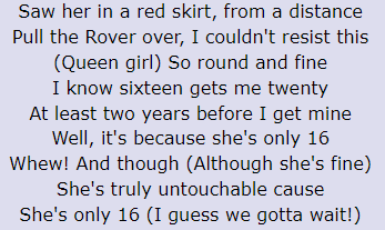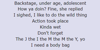 That is an eight line sex crime with a beat you can dance to. And I can’t believe that it took a mere 33 years for that “I need a body bag” line to catch my attention. Did he kill that girl? I guess that could be slang for a condom but he just said he needs a condom in the line before it. Why say it again, you know?