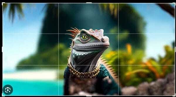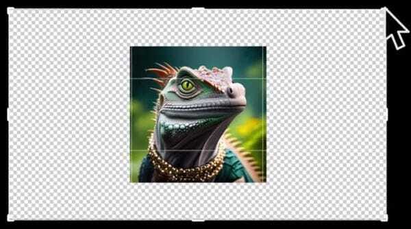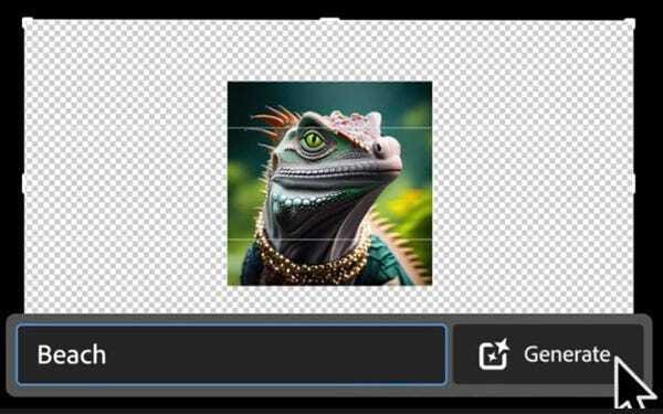 Then, you type a prompt into that little “Generative Expand” box you see there at the bottom of the image and Photoshop fills all of that blank space with whatever your heart desires. It’s supposed to be that easy. They demonstrate the feature inside the program with this picture of a very handsome lizard.
