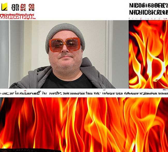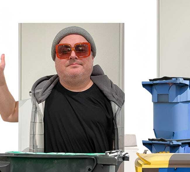 Not too shabby! Sure, my left hand looks like it was crafted for a Guillermo del Toro film, but that’s just typical AI tomfoolery. With this much improvement in the second pic, surely option number three will be a shockingly accurate depiction of me amidst a pile of garbage, just as requested.