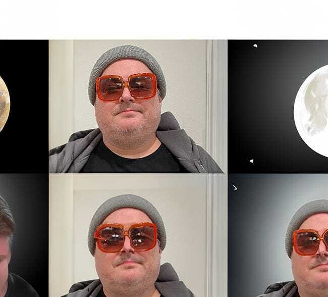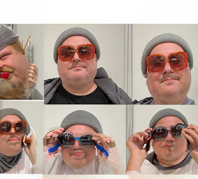 This is me, and then four increasingly horrifying versions of me, yet all I want to know is who the fuck is that on the top left? Also, I think I’m a goggles guy now! Maybe I’ll wear them to the next party!
