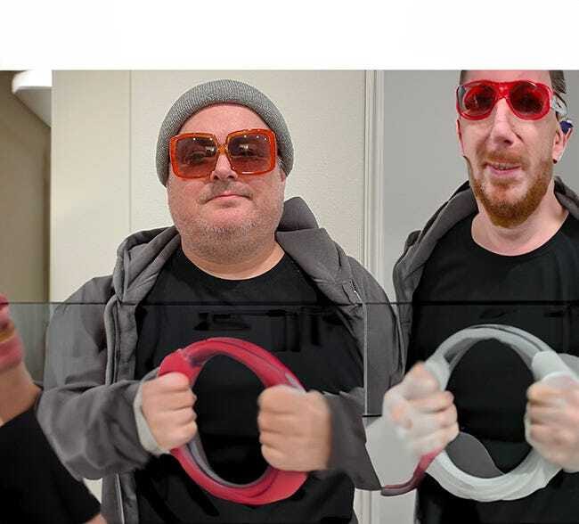 There are a lot of terrifying things going on in this image, and against all odds the most terrifying of them all is my hands. I am the demon now, and this party is happening in hell. I’m assuming the image on the left is what I see when I look in the mirror at this hell party. The guy on the right is probably Greg. We’re wearing the same shirt and he wants to talk about it a bunch. This is hell, indeed.