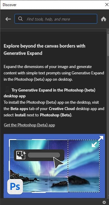 When I opened Photoshop earlier today, I was met by a pop-up inviting me to test out a new feature called Generative Expand.