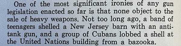 Correct! But that was in October, 1968. This book was published in June, 1968. That means any budding Kennedy shooter who might have been inspired by a combination of that “ONE SON IS LEFT” page and this paragraph from the mail-order guns article…