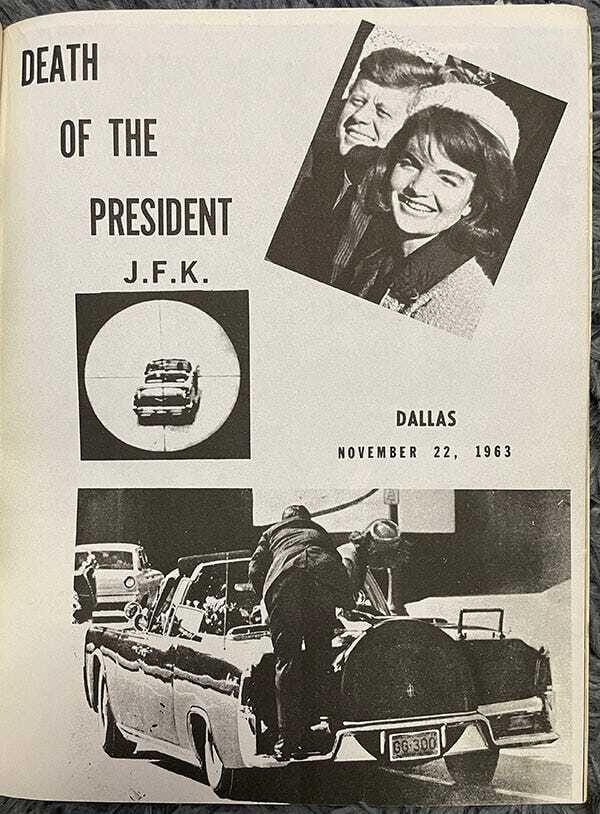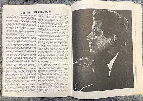 I guess that’s to be expected? But there’s also this page that seems to be an uncredited newspaper article from some point in the past that’s all about Jackie Kennedy setting up a permanent memorial to her dead husband.