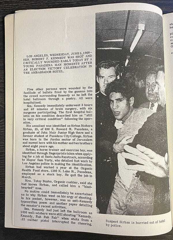 That presents a huge problem in that, by all witness accounts, Sirhan Sirhan never got close enough to Bobby Kennedy to shoot him at point blank range. That’s why, if you dig into it, you’ll find source upon source upon source throughout the years questioning if there was maybe a second shooter in the room. Whether intentional or not, the publishers of this book went a long way toward cutting off that version of events at the pass.