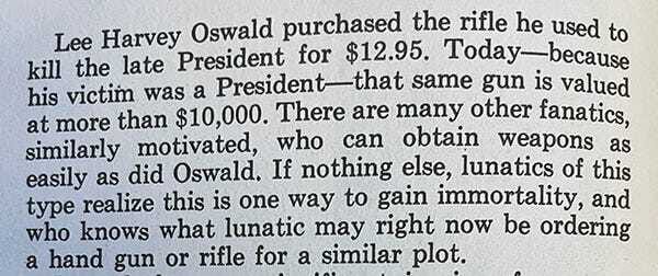 It’s an article about how Lee Harvey Oswald bought the gun he killed JFK with through the mail. Seems a little irresponsible to me, if nothing else.